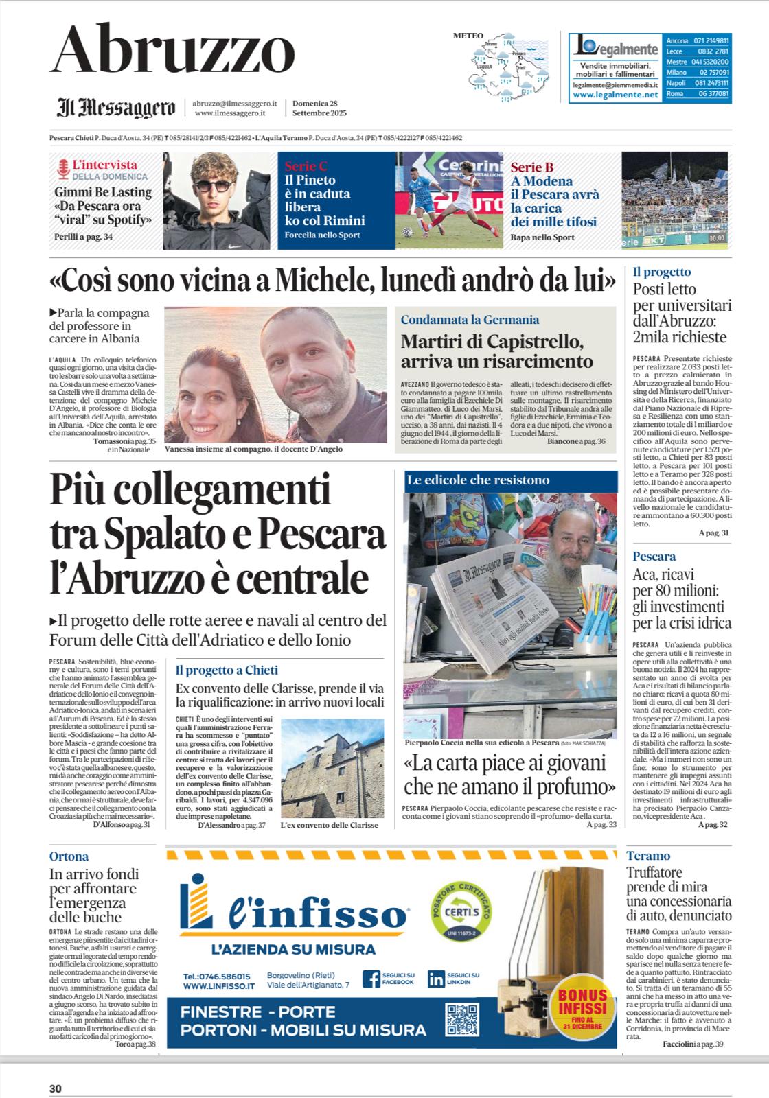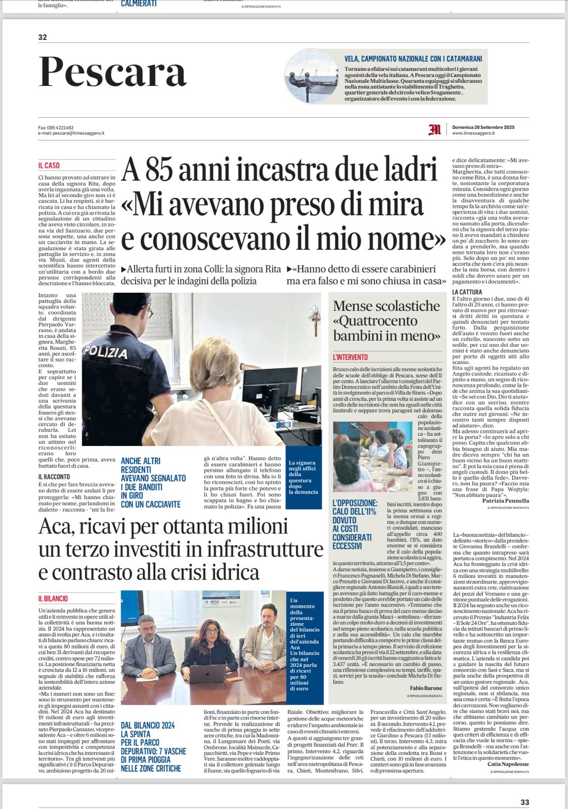 Il direttore Santedicola ha illustrato anche i progetti futuri tra cui quello dell’efficientamento energetico portato avanti dall’Azienda: “ACA S.p.A. sta portando avanti un imponente progetto di efficientamento energetico che ha già portato ad un efficientamento dei costi operativi di oltre 2 milioni di euro nel solo 2025. Il progetto prevede la realizzazione (già effettuata) di 8 impianti fotovoltaici, di un impianto di cogenerazione da biogas presso il depuratore di Pescara in corso di realizzazione, di un sistema di produzione sfruttando le turbine idroelettriche nella centrale di Chieti, di utilizzo della AI per la gestione dei consumi di energia presso gli impianti di depurazione. Inoltre, sta portando avanti un ambiziosissimo progetto di riutilizzo delle acque reflue in uscita dal depuratore di Montesilvano che, una volta affinate in maniera molto spinta, saranno presto destinabili all’uso irriguo e all'uso industriale con notevole conseguente risparmio dell'acqua potabile per questi usi”.